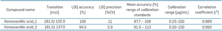 - An LC-MS/MS method for the analysis of homovanillic acid in urine using the QTRAP 6500+ system with a simple sample preparation procedure using a 1000-fold dilution with water