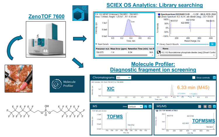 - PFAS characterization in cosmetic products was performed using data-dependent acquisition (DDA) with the ZenoTOF 7600 system