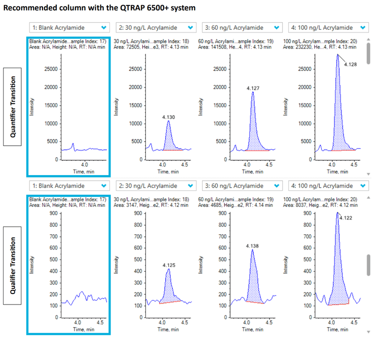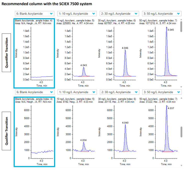 - Acrylamides using the QTRAP 6500+ system or the SCIEX 7500 system