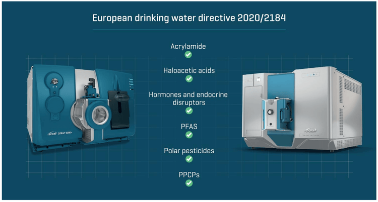 This technical note highlights the key results from our compilation of drinking water methods based on European Union (EU) Directive 2020/21841 using the QTRAP 6500+ system and the SCIEX 7500 system. The operating procedure documents include full method details—such as chemicals and reagents, sample and standard preparation, instrument parameters, a results overview and example chromatograms—to ensure easy and repeatable replication of the methods on your instrumentation. Each method has been created with EU Directive 2020/2184 in mind, and in each case, the respective limits set by the directive were achieved.