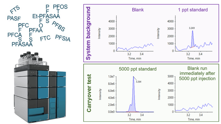 PFAS are synthetic compounds engineered for resistance against grease, oil, water and heat. With these properties, PFAS are extensively utilized in numerous consumer and industrial products, including water- and stain-resistant textiles, carpets, cleaning agents, paints and firefighting foams. Additionally, PFAS compounds are commonly found in laboratory materials and equipment, adding complexity to analytical procedures. The widespread use of PFAS in diverse products and their environmental persistence contribute to their presence in laboratories. Addressing this issue requires careful consideration to ensure the precision and reliability of analytical results across repeated injections with limited carryover.