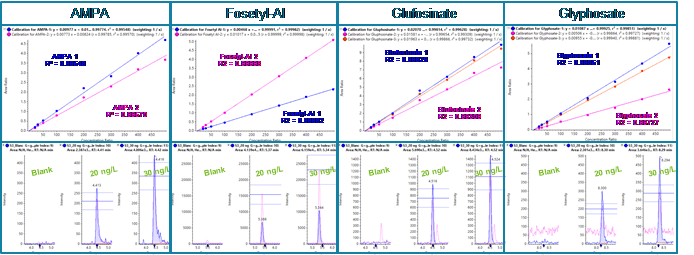 - LOQ = 30 ng/L for AMPA, glufosinate, glyphosate