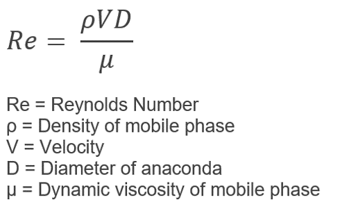 A novel online AnaCondA mixer was placed upstream of the analytical column to promote mixing (Figure 1). This approach works through increasing the Reynolds number (Equation 1) and promoting turbulence, therefore creating more mixing.