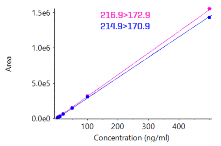 - Good linear performance: The aqueous-based calibration exhibited an r2 ≥0.999 and a linear dynamic range (LDR) of over 2 orders of magnitude.