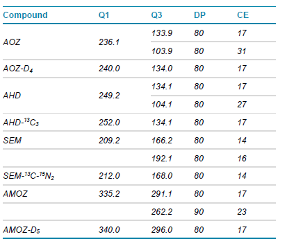 Here, an accurate quantitative method for nitrofuran metabolites was developed on the SCIEX Triple Quad 3500 LC-MS/MS System. This method provides a simple and fast solution to the problem of nitrofuran compound residues in animal-derived foods.