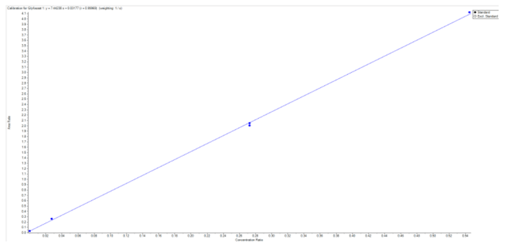 The addition of internal standards is essential to compensate for the shifting retention times in most chromatographic method and helps to counter matrix effects where present. This was particularly important for grain and seed samples, where chromatographic performance deteriorates, and the MS source becomes dirty, losing sensitivity quickly, so dispersive C18 cleanup as described in the QuPPe-AO3 method was attempted before finalizing on a push-through method with two sorbents using SPE filters.