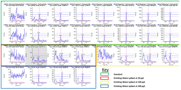 Method verification was performed with real drinking water samples, testing for both AMPA and Glyphosate, a LOQ of 20ng/L could be reached.