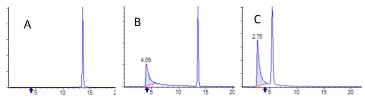 Various chromatographic methods have been investigated and found to have several limitations. Figure 2 illustrates the common practice of extensive conditioning prior to analysis, which after relatively few (typically 30-50) sample injections in order to maintain peak shape and retention time Ion chromatographic methods showed most promise, but the eluents’ incompatibility with electrospray ionization sources requires the use of a suppressor, which is detrimental to peak width. However, by employing a polyvinyl alcohol based column with quaternary ammonium groups and using an ammonium bicarbonate buffer prior to detection by a very sensitive quadrupole mass spectrometer, the need for a suppressor is removed.