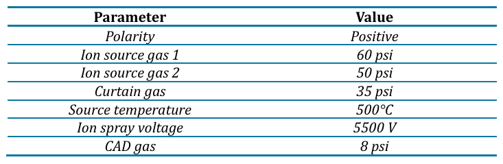 - An LOQ of 2.5 ng/mL in the solvent-based standard using the QTRAP 4500 system