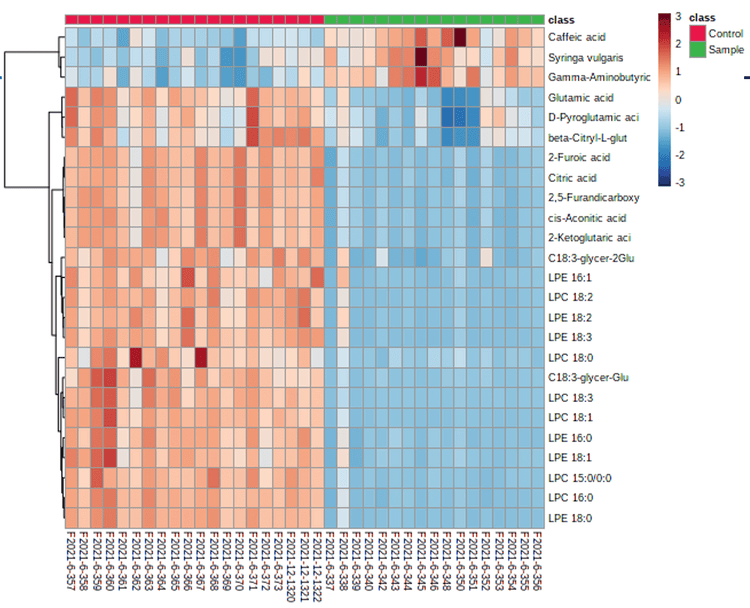 Data reproducibility is critical in omics-based research. In this experiment, nine QC samples interspersed between samples demonstrated good reproducibility in peak areas (Table 3).