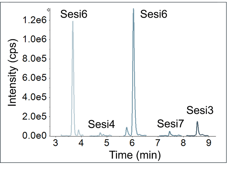 Testing for the presence of sesame allergens in food has recently been added to the United States food testing list. Here, two peptides from specific sesame proteins were selected and MRM transitions were added to the SCIEX vMethod for Food Allergen Testing. Method was tested in cookie dough using the SCIEX 7500 system and provided 5 ppm detection with good repeatability.