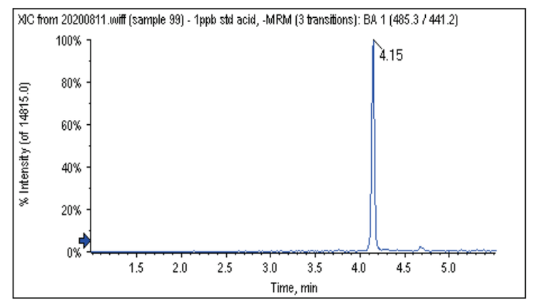The traditional BA analysis methods include liquid chromatography, thin layer chromatography (TLC) and UV spectroscopy. Compared with traditional analytical methods that have long detection times and poor accuracy performance, LC-MS/MS methods have good specificity, high sensitivity, fast analysis speeds, and are widely accepted by the food safety testing market
