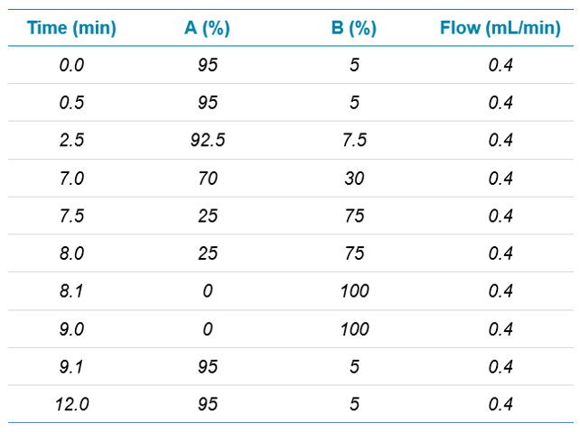 Phenomenex Luna Omega Polar C18 column with 10 cm length was employed for the analysis of pyrrolizidine alkaloids in herbal tea extracts and allowed for the chromatographic separation of most of the compounds except some of the isomeric species (Figure 2). The demonstrated use of SelexION+ Technology significantly increased the selectivity of this approach. Therefore, a chromatographic baseline separation of the isomers is not necessary and, thus, the total run time could be reduced to 12 minutes.