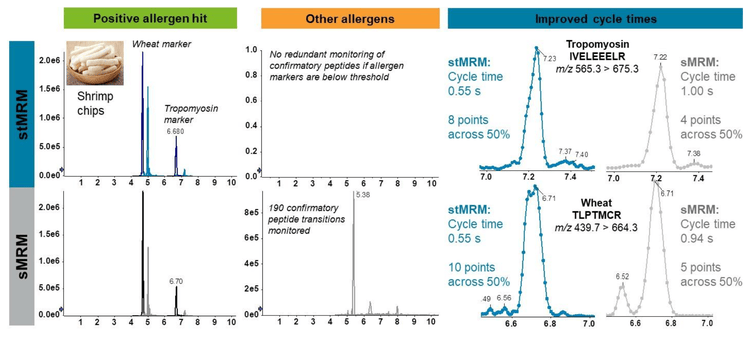 In this technical note, a targeted allergen screening assay was developed using stMRM, a novel MRM acquisition mode previously applied for proteomics,7 pesticides8 and metabolomics studies.9