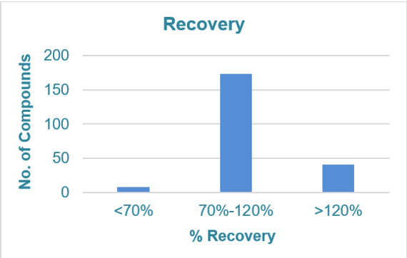 The method has a high extraction recovery rate, the extraction recovery rate of more than 95% of the compounds is greater than 70%, the figure below (Figure 2) details the recoveries.