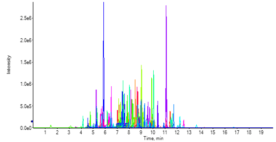 This workflow demonstrates a single injection method for the detection and quantification of 222 compounds within 20 minute run time (Figure 1). The method shows consistency and robustness as well as sufficient sensitivity and precision to enable high throughput analysis of tea extracts.