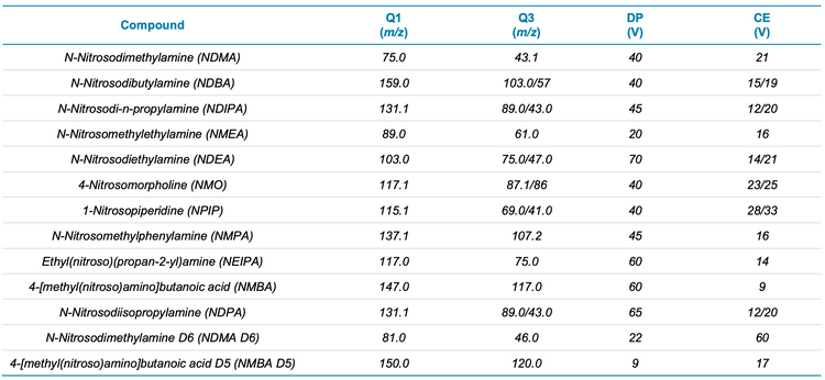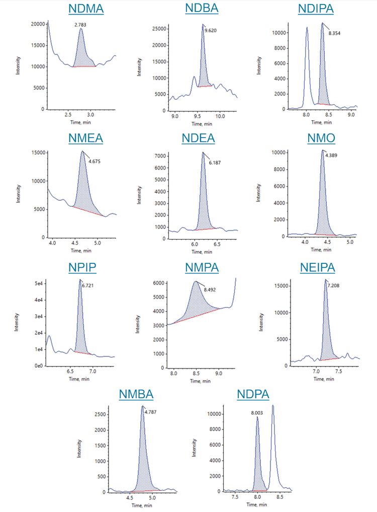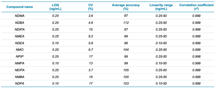 - Broad analyte coverage. 11 nitrosamine compounds included in the analysis method