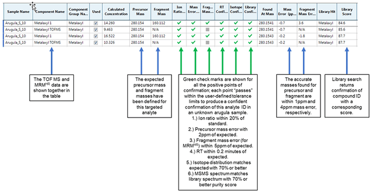 Food and environmental sample analysis represents an impossibly large universe of potential matrices and hundreds of potential contaminant residues, including chemically alike (even isomeric) species, as well as those which may be widely chemically diverse. In addition to robust routine quantitation, testing laboratories are increasingly tasked with confirmation of positive detections. In addition to the paramount importance of protecting consumers and the environment, positive hits or above-tolerance limit results can also lead to the delay or destruction of products, with massive impacts to import, export, sale or distribution, and millions of dollars, at stake.