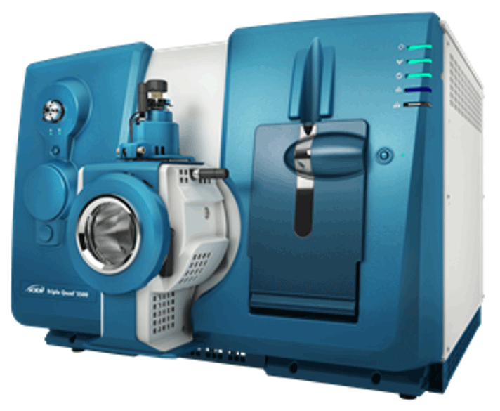 Mass Spectrometry: Analysis was performed using a SCIEX Triple Quad™ 5500 System with the Turbo V™ Source operating in positive ion mode, source conditions are shown in Table 2. At least two MRM transitions were optimized for each analyte as outlined in Supplementary infomration,2 final data was collected using Scheduled MRM™ Algorithm using Analyst® Software 1.6.3.