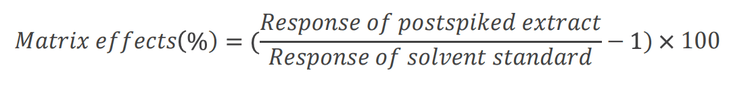 - Minimal matrix effects (<15%) were observed due to a wide dilution range, which also removed the need for further extract clean-up and allowed the use of a single solvent-based calibration.