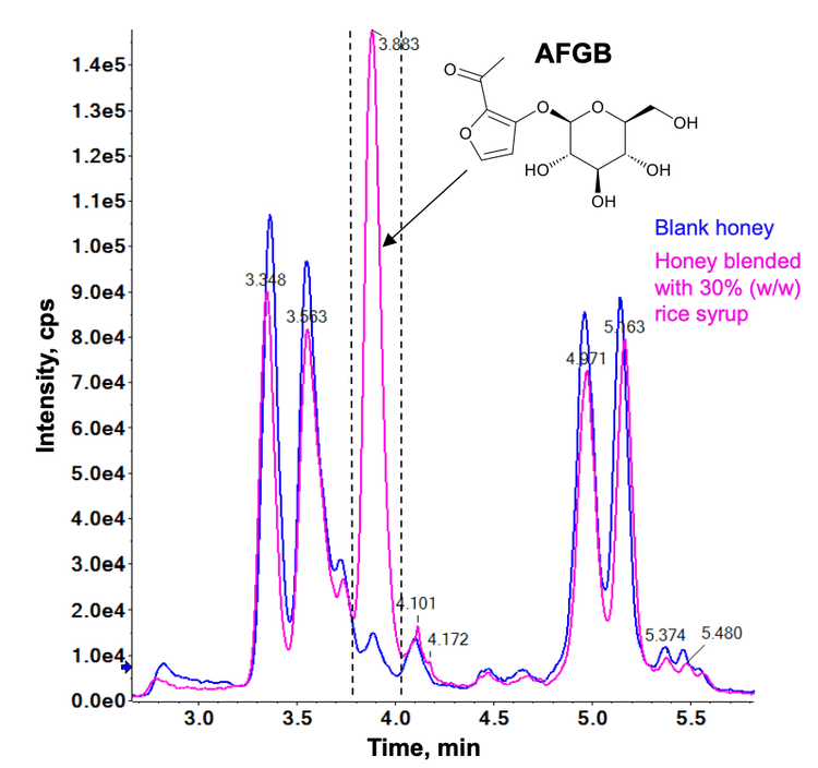A recent US FDA survey reported adulteration in 10% of imported honey products,1 while an investigation led by the European Commission found that 46% of honey samples tested were suspected to be adulterated by inexpensive sweeteners such as sugar syrups from rice, beets and cane.2 Honey authenticity is strictly regulated in the US and Europe, which warrants the need for analytical techniques capable of detecting low-level syrup adulterants.