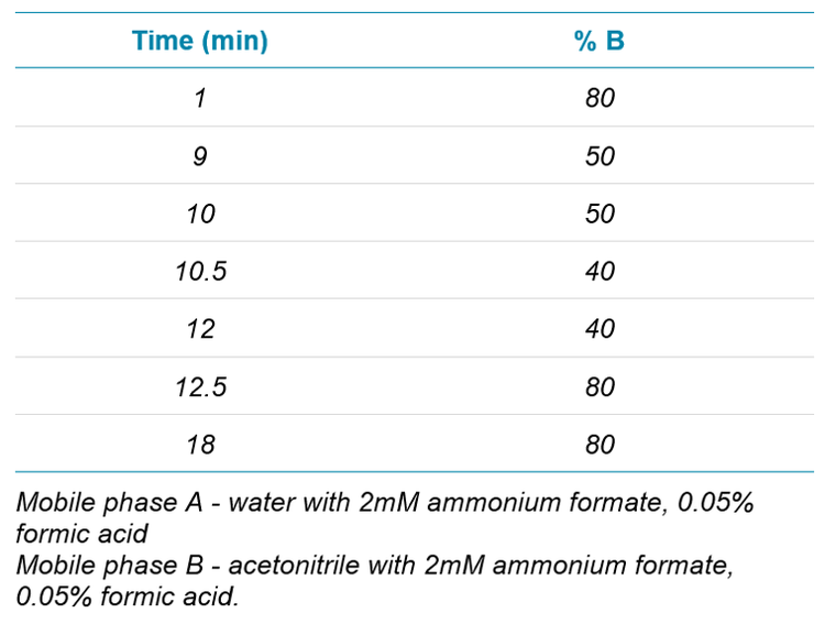 Chromatography: Liquid chromatography analysis was performed using a SCIEX ExionLC™ AD System. 10 μL was injected onto a TSK-GEL Amide-80 column (150mm X 2.0 mm, 3.0μm).