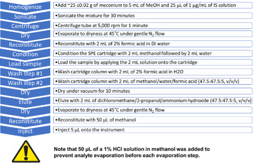 - Solid phase extraction (SPE) for selective extraction of drugs from meconium samples