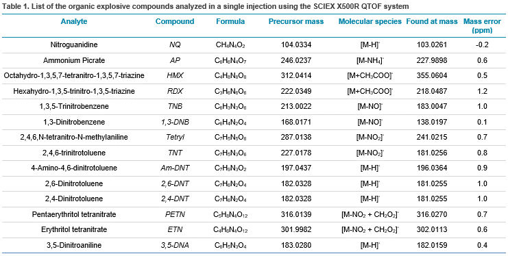 - The SCIEX X500R QTOF system provides the speed and mass accuracy for the high throughput identification and quantitation of organic explosives in forensic analytical settings.