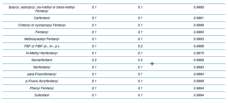 - Baseline separation of all critical isomers (fentanyl analogs) was achieved using an extended 17-min LC method