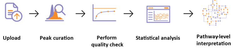 - A typical workflow includes data upload, peak curation, quality check and statistical analysis leading to pathway-level interpretation (Figure 1)