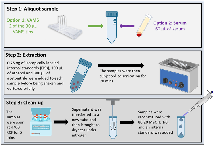 Figure 2. Simplified sample extraction procedure for both VAMS and serum samples.