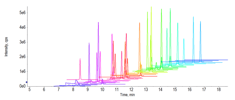 • Elevated sensitivity of the SCIEX 7500 system allowed for 100 pg/mL minimum detection levels, which are aligned with concentrations that are relevant for human health