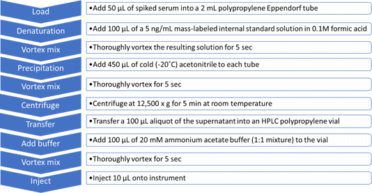 Figure 2.  Protein precipitation procedure for serum samples. A 10-step protein precipitation procedure was used for extracting the PFAS from serum samples for MS analysis.