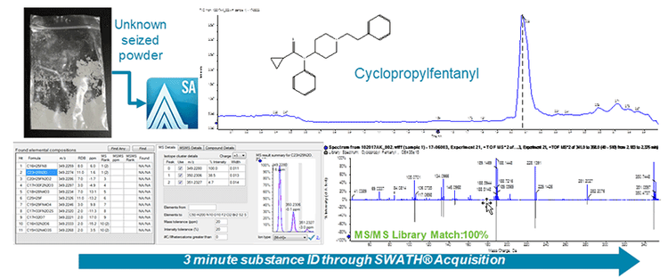 The combination of ultra-fast LC separations with SWATH Acquisition provides forensic investigators quick and reliable identification of novel synthetic opioids present in seized drug samples.