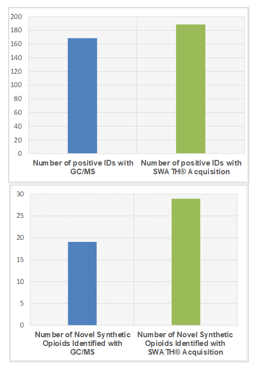 - Due to the comprehensive nature of SWATH Acquisition, improved novel synthetic opioid detection was achieved in comparison to GC/MS.