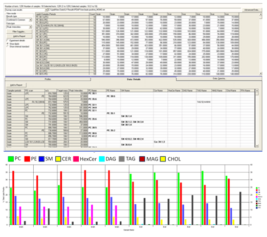 Data processing: Visualization of the 3-dimensional Infusion MS/MSALL workflow data was done using PeakView software and lipid identification and quantification was done in LipidView software.