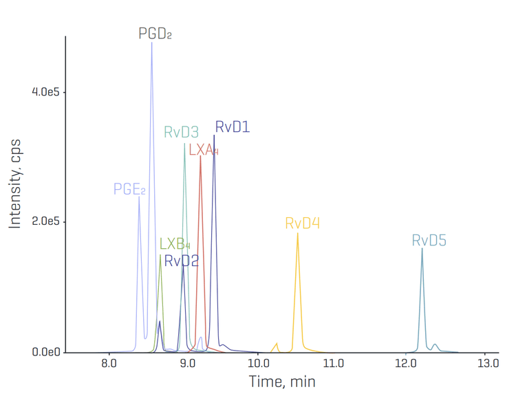 The ability to identify and differentiate between many structurally related lipid mediators at low concentrations in biological samples is critical to the understanding of human physiology and disease response. Targeted lipidomics strategies using highly sensitive LC-MS/MS has emerged as an important analytical technique that can tackle the challenge of lipid mediator profiling and characterization.3,5,6,7