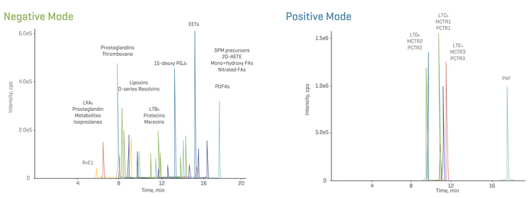 - A single positive ion/negative ion switching method enables the optimum detection of a diverse set of lipid mediator species within one data acquisition