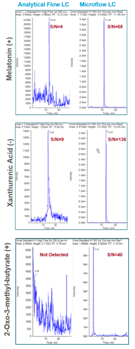- This microflow LC-MRM workflow provides improved sensitivity and S/N ratio of up to 60X with an average improvement of 10X which offers a solution for detection of metabolites where metabolites need to be identified in low concentrations and/or when sample volumes are limited.