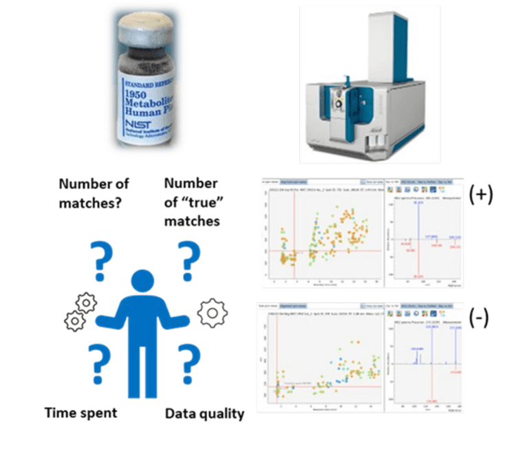 Sample preparation: NIST SRM 1950 samples were extracted by a one-phase liquid extraction. Four volumes of ice-cold ethanol were added to 1 sample volume and vortexed for 30 seconds. Extraction mixtures were centrifuged to separate the precipitated protein debris, and the supernatant was used directly for metabolomics analysis. The supernatant can be stored at -20 oC for future analysis.