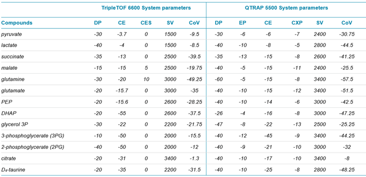 Table 2. Parameter settings for the TripleTOF 6600 System and QTRAP 5500 System for all compounds in the MIMOSA experiment.