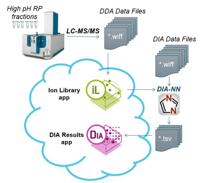 - Spectral libraries for analysis of DIA data using DIA-NN software can be generated using the Ion Library app in OneOmics suite