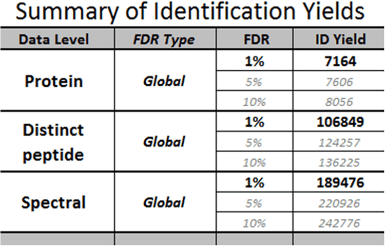 - 1 hour total run time per fraction with microflow LC – 15 hours of MS time generate a large number of protein identifications