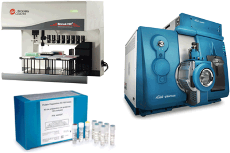 - SCIEX Protein Digestion Automated Solution consists of the Biomek NXP Span-8 liquid handling system along with the SCIEX Protein Preparation Kit (SCIEX P/N 4445247) and TPCK-treated trypsin (SCIEX P/N 4445250).