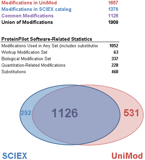 Behind all of the features within the Bio Tool Kit lies the Data Dictionary. This dictionary contains detailed information about the building blocks for biomolecules such as amino acids and nucleotides. Additionally, the dictionary contains over 1300 biological, sample preparation, and substitution modifications including modifications from the UniMod database (Figure 6). Users may even edit the dictionary to add custom modifications if desired. This modification catalog is used in all relevant SCIEX software packages to ensure consistency across experiments and data processing: