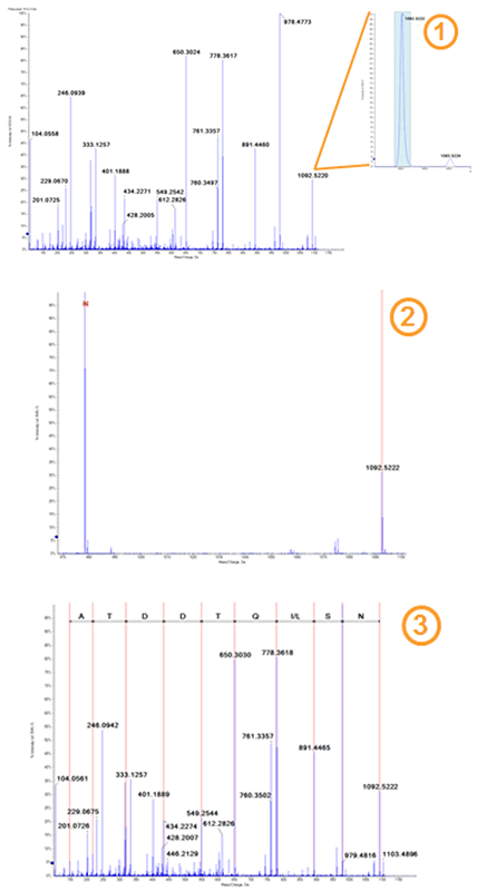 - Find the sequence of unknown peptides using the de novo sequencing tools and then match the proposed sequence to fragment ions within the MS/MS data