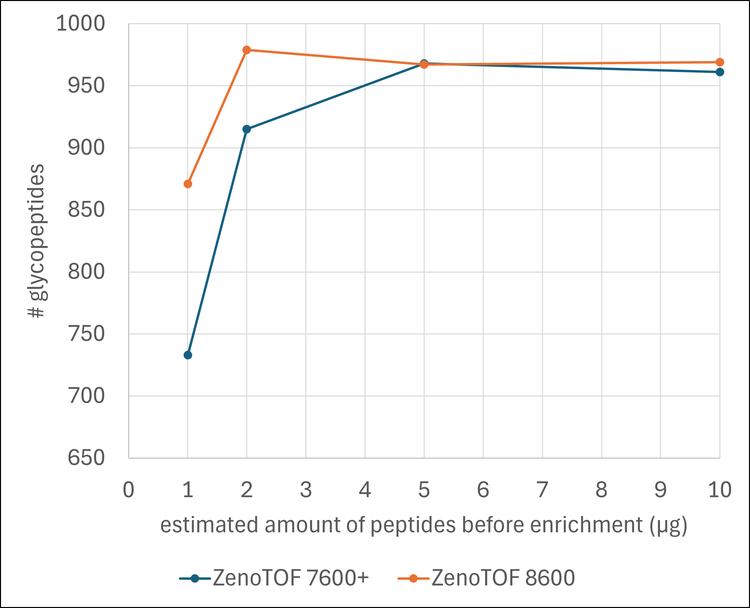 Comparison of ZenoTOF 7600+ and 8600 systems’ sensitivities for glycopeptide identification