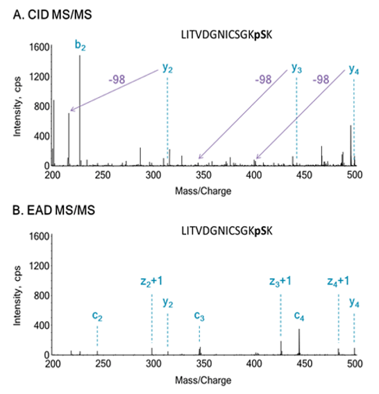 - Efficient electron activated dissociation (EAD)3 generates strong and distinct PTM site localization ions, enabling phospho-isomer differentiation