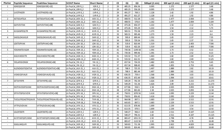 - Ayciriex S et al. (2020) Streamlined Development of Targeted Mass Spectrometry-Based Method Combining Scout-MRM and a Web-Based Tool Indexed with Scout Peptides. Proteomics, 20, 1900254.