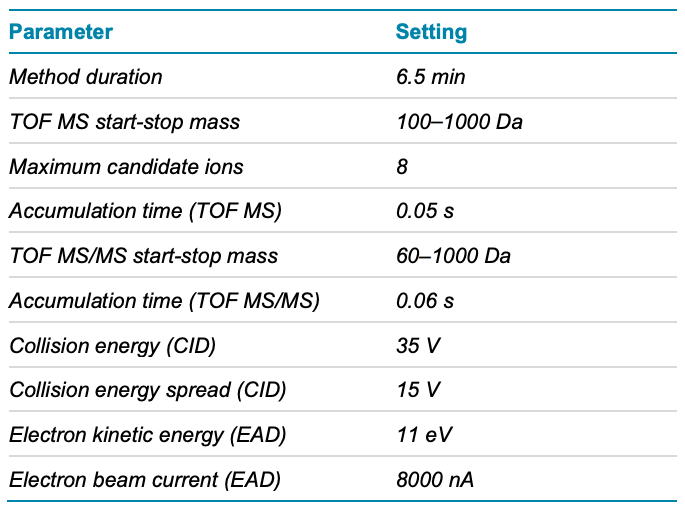 - An innovative feature from Molecule Profiler software was utilized to identify unique fragments from EAD and CID spectra in a single results file to achieve more accurate structure assignment of metabolites